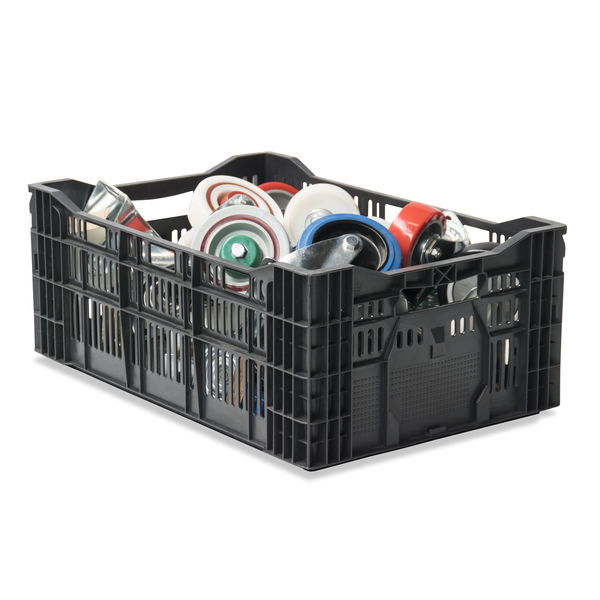 Euronorm krat met de buitenafmetingen 600 x 400 x 240mm die stapelbaar en geperforeerd is. De binnenafmetingen bedragen 566 x 367 x 224 mm. Dit is een multifunctionele Eurokrat die veel gebruikt wordt in de agrarische sector. De stapelbare krat is gemaakt van gerecycled HDPE kunststof.